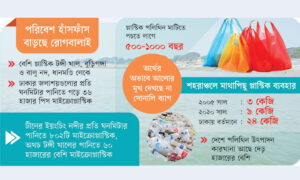 এদিকে পলিথিন উৎপাদনে সারা দেশে দেড় হাজারের বেশি অবৈধ কারখানা রয়েছে। প্লাস্টিক ও পলিথিনের এই মাত্রাতিরিক্ত ব্যবহারে ধ্বংস হচ্ছে পরিবেশ, ক্ষতিগ্রস্ত হচ্ছে নদী ও সাগর। আর বর্ষাকালে ভেঙে পড়ছে দেশের ড্রেনেজব্যবস্থা। মানবস্বাস্থ্যের নানা রোগের উপসর্গ তৈরি করছে এসব পলিথিন ও প্লাস্টিক।