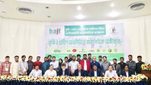 বিএজেএফের সাধারণ সম্পাদক আবু খালিদের সঞ্চালনায় এতে সভাপতিত্ব করেন বিএজেএফ সভাপতি সাহানোয়ার সাইদ শাহীন।