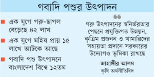 উৎপাদন বাড়ছে। সব মিলিয়ে দেশে এখন গরু ও ছাগলের সংখ্যা পাঁচ কোটি ১৪ লাখ ৭৪ হাজার।