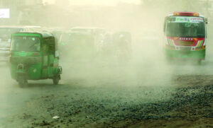 নির্মাণকাজ ও গাড়ির সংখ্যা দায়ী : এ বিষয়ে ইন্টারন্যাশনাল সেন্টার ফর ক্লাইমেট চেঞ্জ অ্যান্ড ডেভেলপমেন্টের পরিচালক ও ইনডিপেনডেন্ট ইউনিভার্সিটি, বাংলাদেশের (আইইউবি) অধ্যাপক ড. সালিমুল হক কালের কণ্ঠকে বলেন, ‘বর্তমানে বায়ুদূষণে গাড়ি ও শিল্প-কারখানার ধোঁয়ার সঙ্গে যুক্ত হয়েছে ধুলা। বাতাসে ধুলা আগের চেয়ে অনেক বেড়েছে। আগে এত বড় বড় প্রকল্প এবং এত বেশি গাড়ি ছিল না। পাশাপাশি ঢাকা ও পার্শ্ববর্তী এলাকার জলাশয় ভরাট হওয়ায় ধুলার নতুন উৎস তৈরি হয়েছে। বায়ুদূষণ কমাতে আমাদের সমন্বিত পরিকল্পনা গ্রহণ এবং আইনের কঠোর প্রয়োগ করতে হবে।